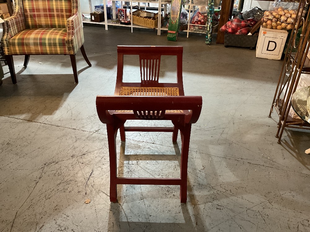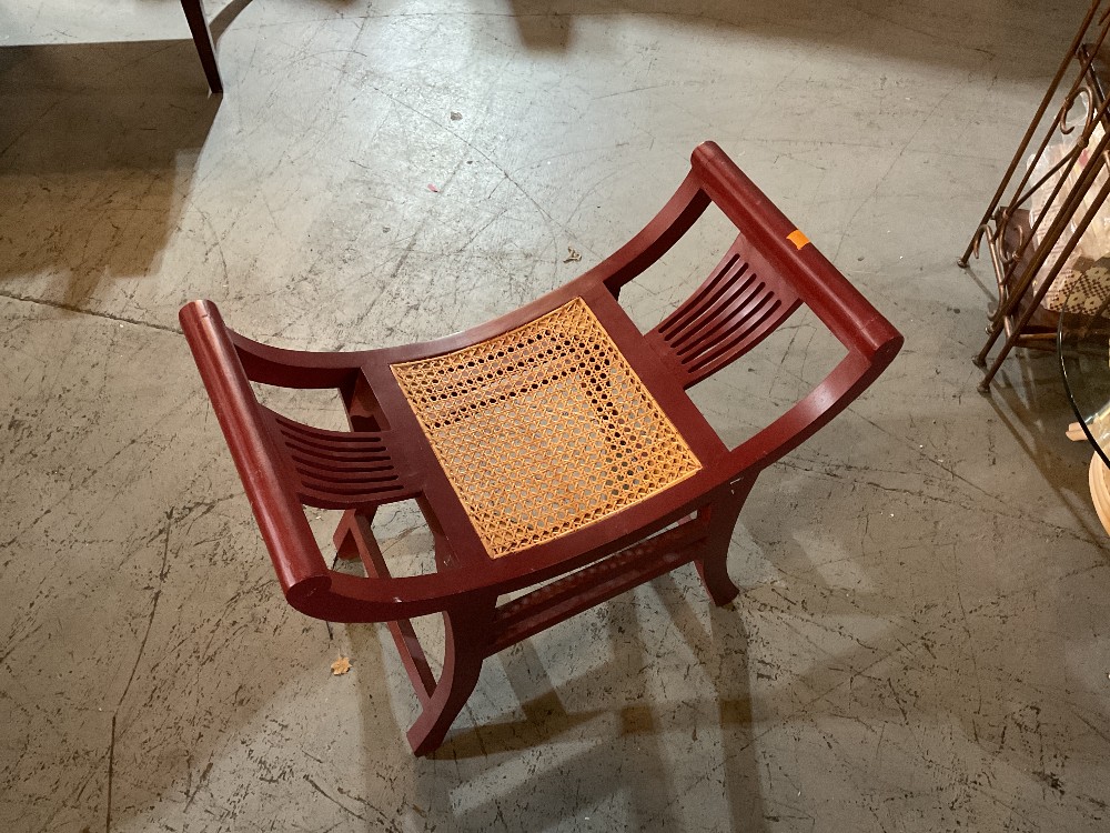 Curule maroon bench chair 29” wide x 15.5” long Floor to seat 17.5” tall Floor to armrest 25.5” tall