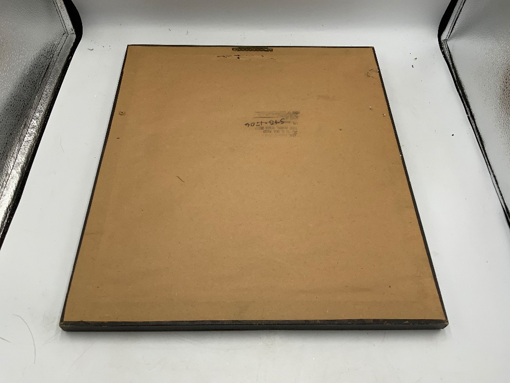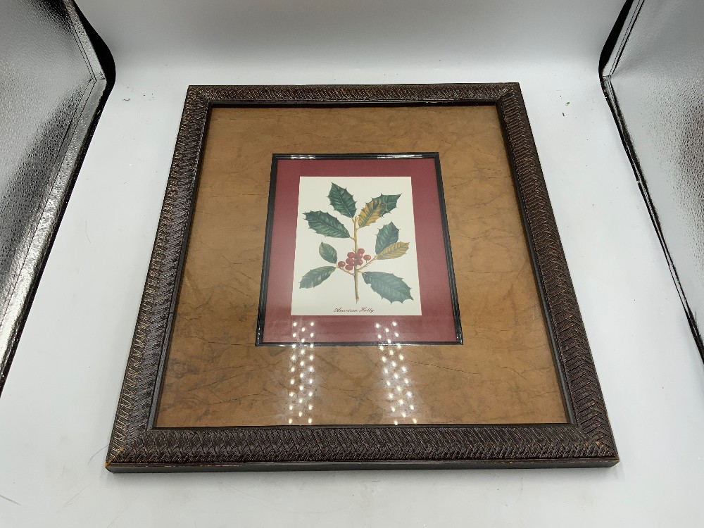 American holly print in brown faux woven frame