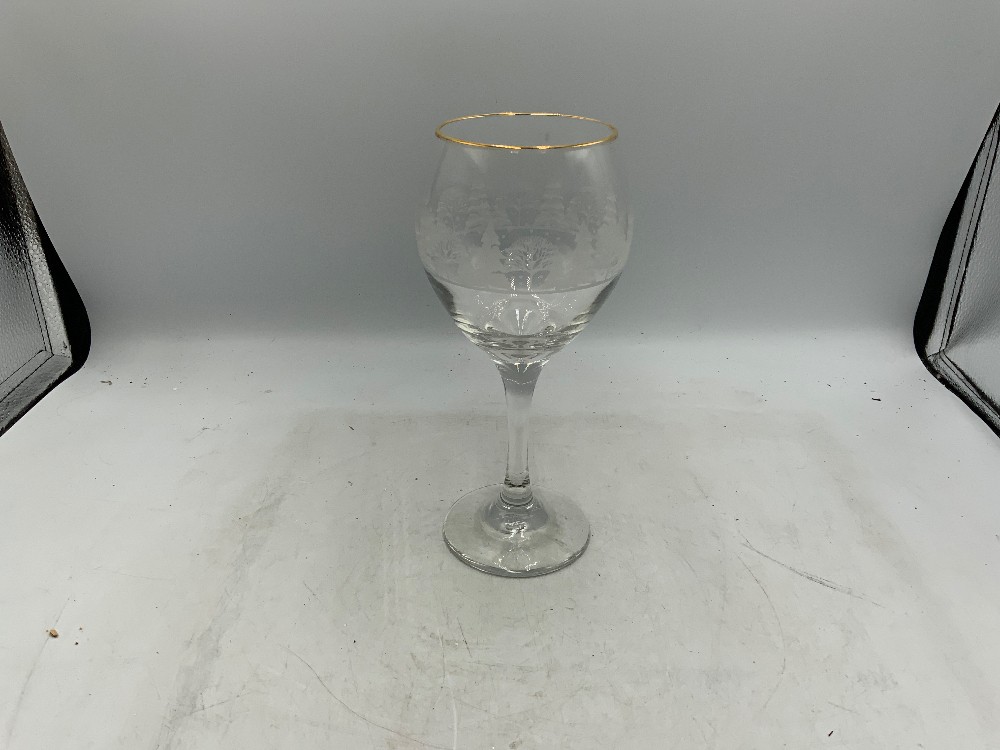 Arbyβs set of 6 wine glasses with frosted Christmas tree design 3.5β x 3.5β x 8β tall