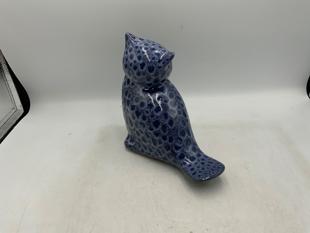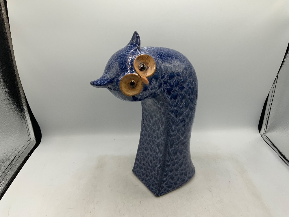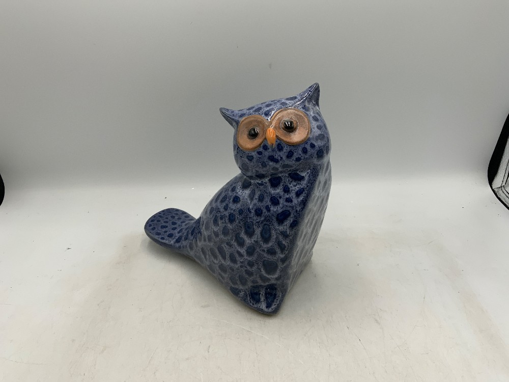 Pier 1 Bookends Ceramic Blue owls Large-12”x8” Base-5” Small-7.5”x7”
