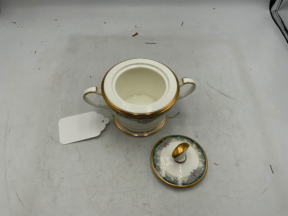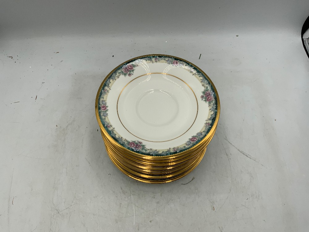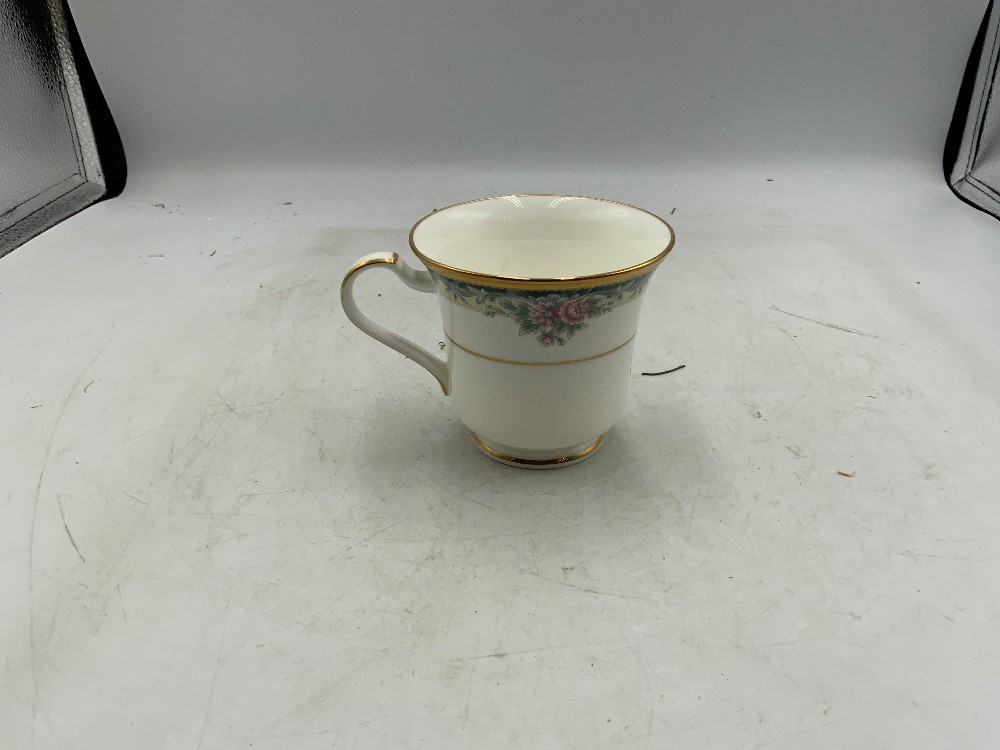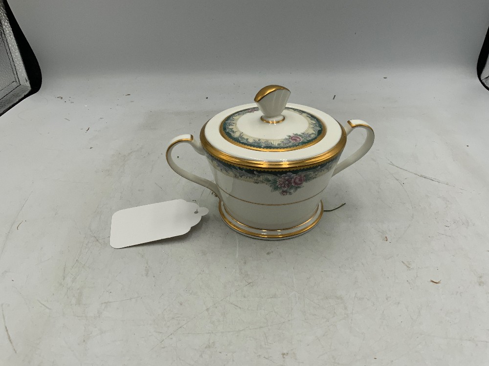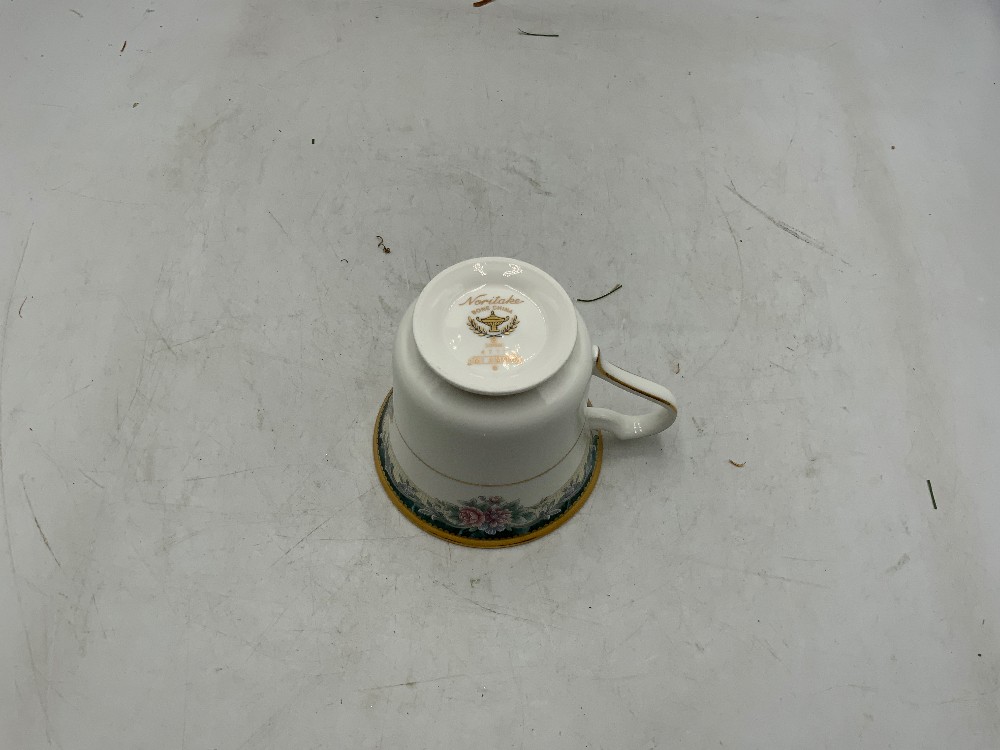 Noritake china tea set of 10 Sugar, saucer, and teacups Sugar 6.5” x 4.5” x 5” tall Saucers 6” x 6” Teacups 4.5” x 3.4” x 8” tall