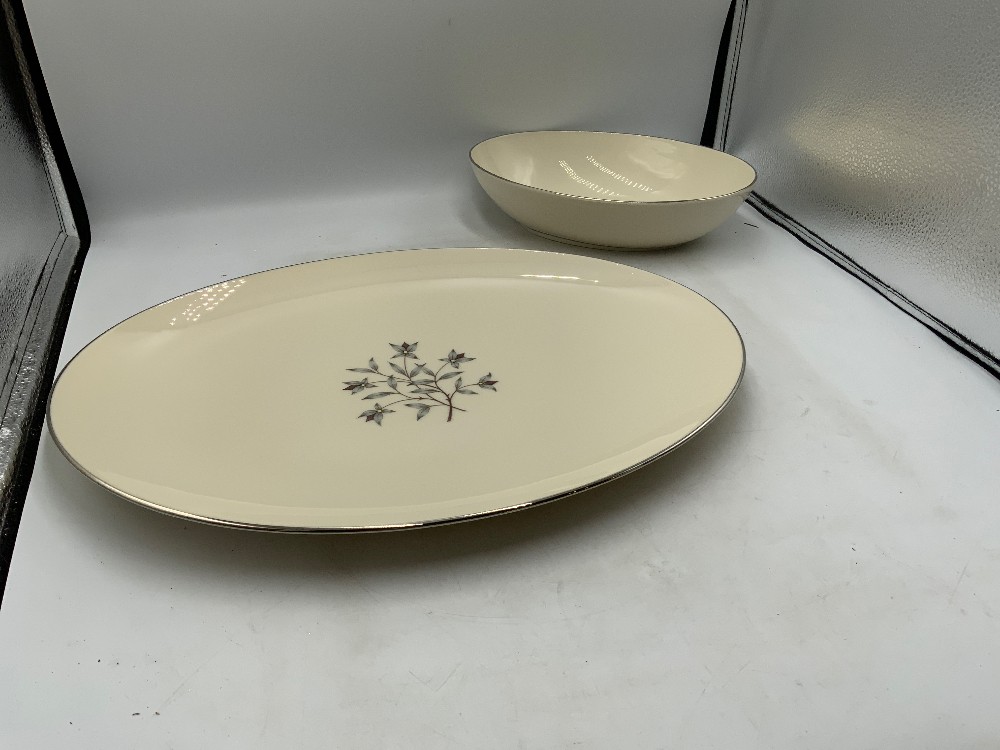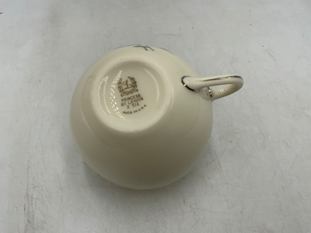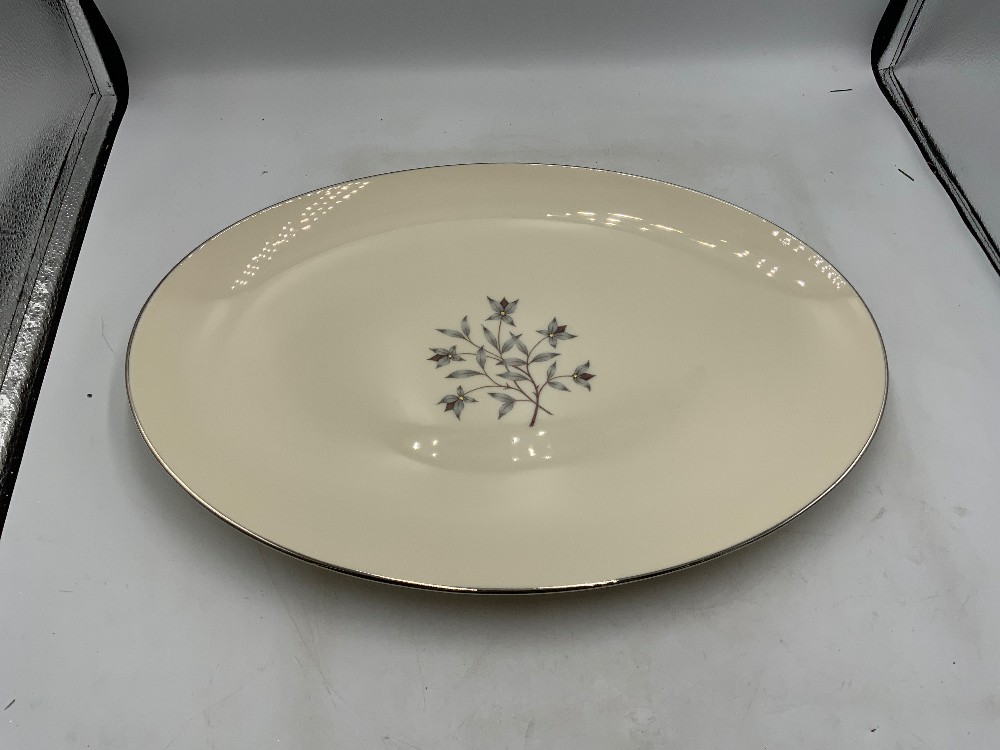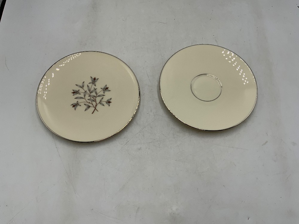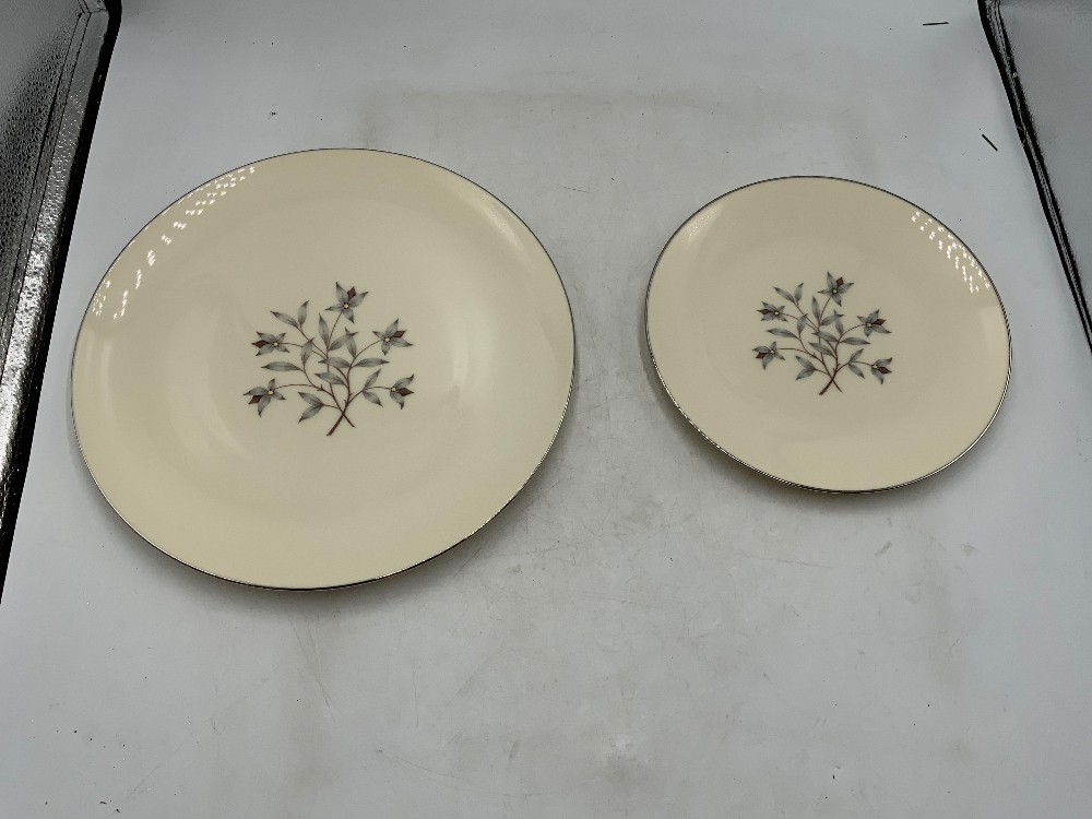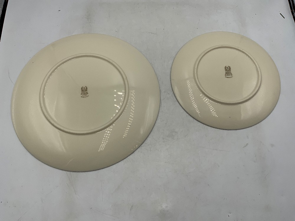 Dinner plates: 10” diameter Salad Plates: 8” diameter Side Plates: 6 1/2 “diameter Saucers: 6 1/2” diameter Cups: 4” diameter x 2” tall Platter: 16” long x 11” wide Serving Bowl: 9 1/2” long x 7” wide x 2 1/2” tall