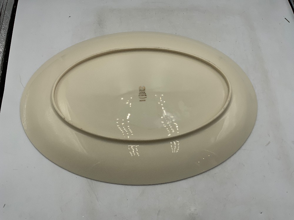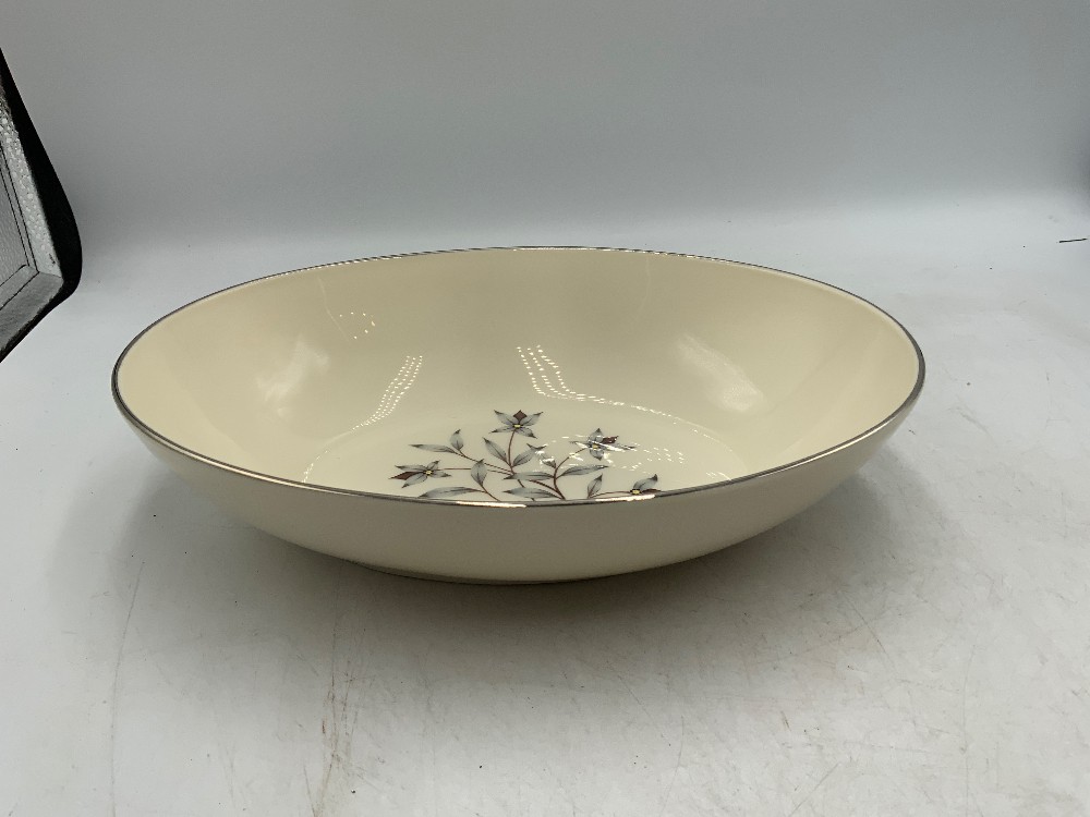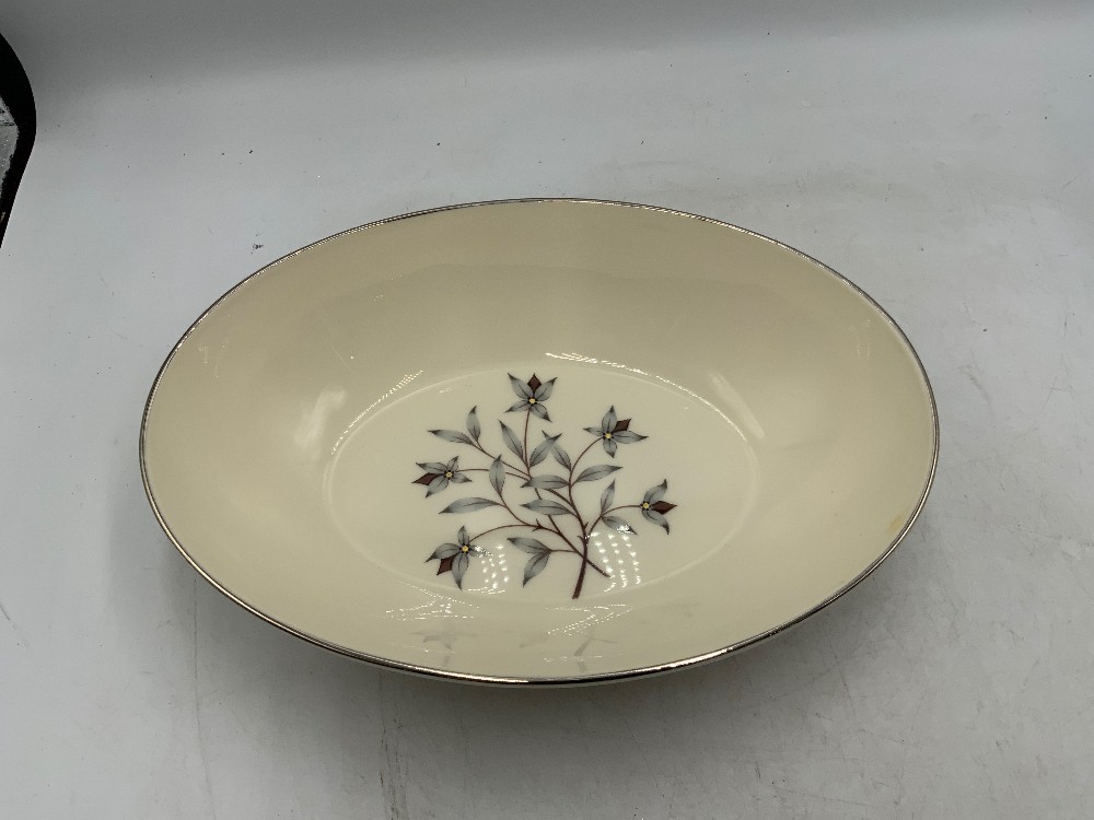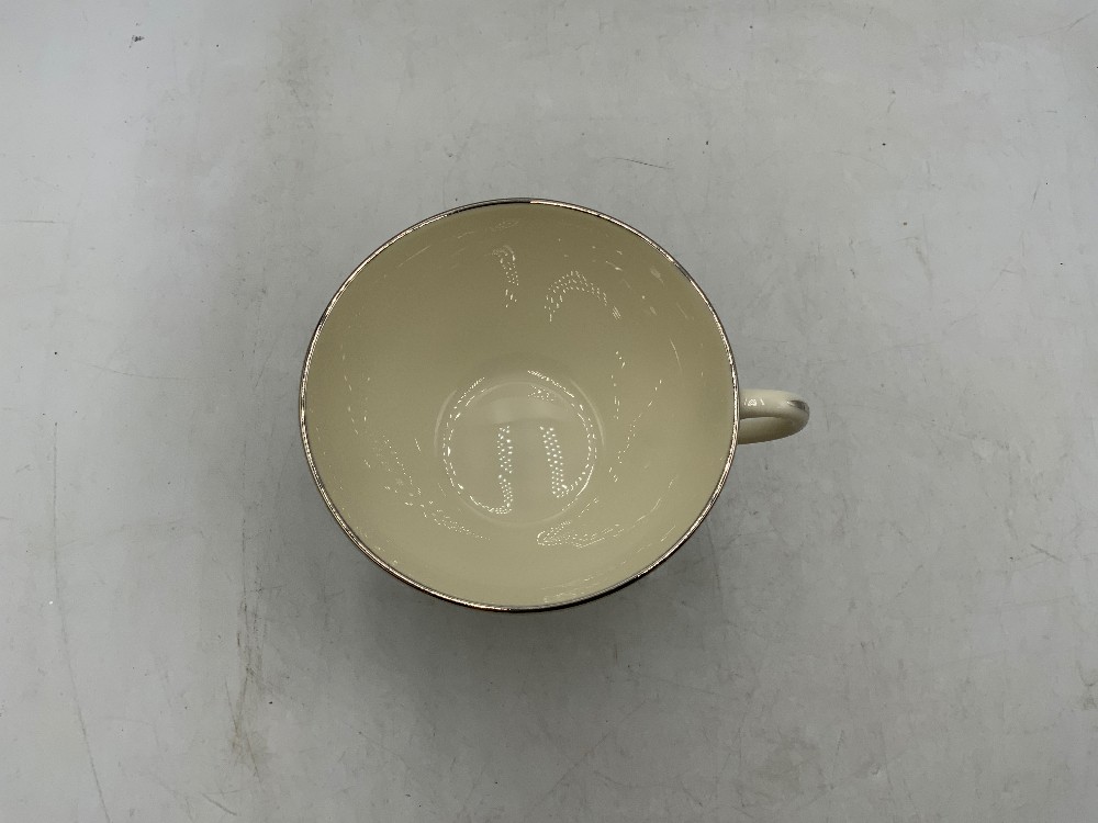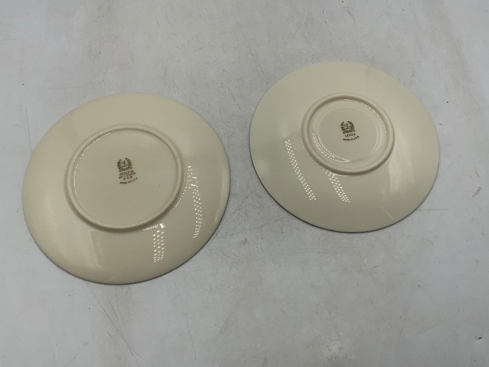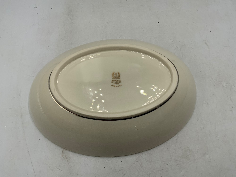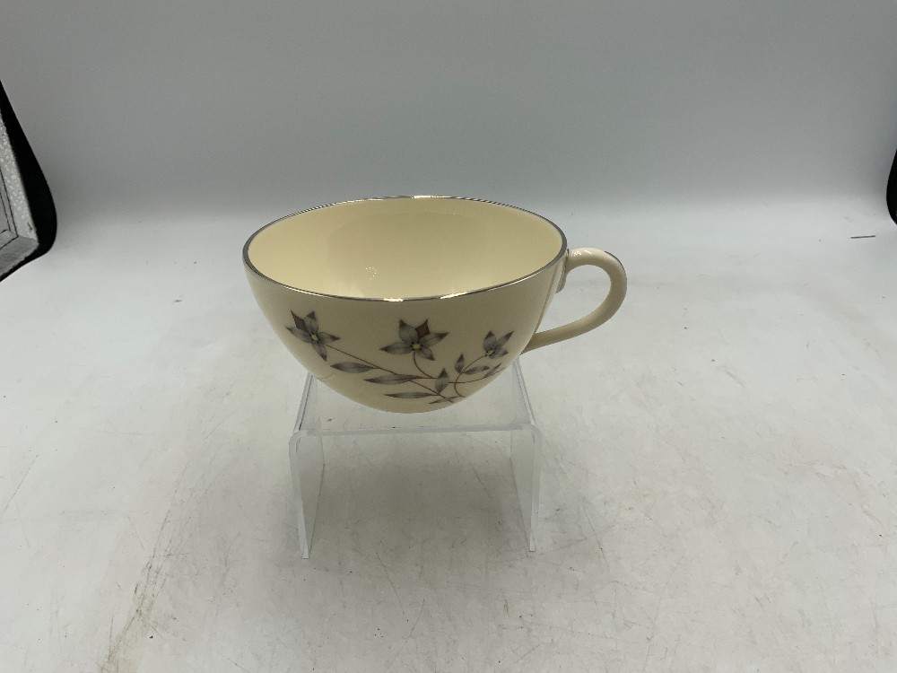 Dinner plates: 10” diameter Salad Plates: 8” diameter Side Plates: 6 1/2 “diameter Saucers: 6 1/2” diameter Cups: 4” diameter x 2” tall Platter: 16” long x 11” wide Serving Bowl: 9 1/2” long x 7” wide x 2 1/2” tall