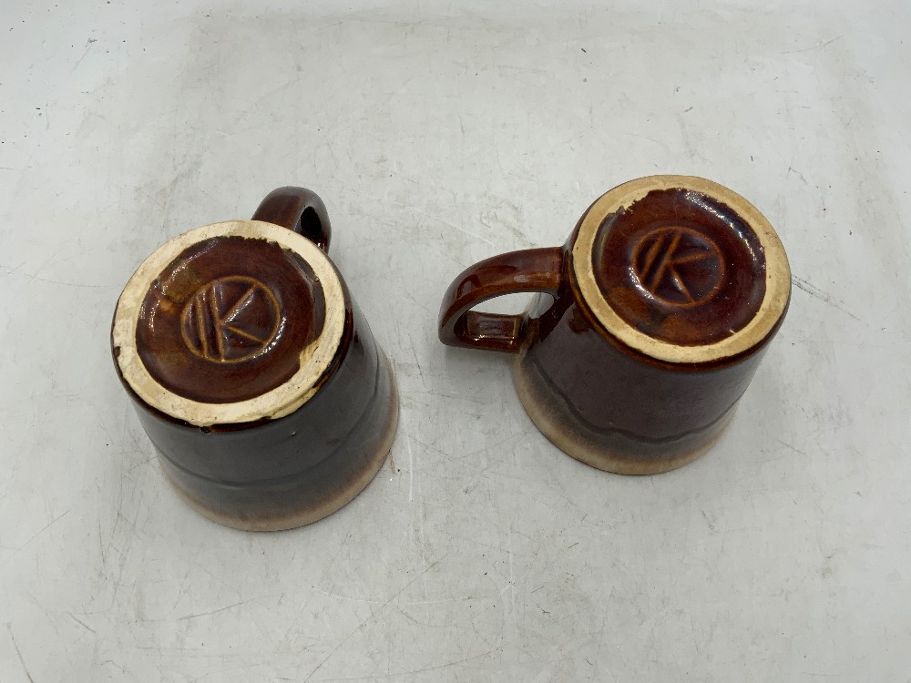 Dinner Plates: 10 1/2 inches diameter Bowls: 5 inches diameter x 2 inches tall Mugs: 3 1/2 inches tall x 3 1/2 inches diameter