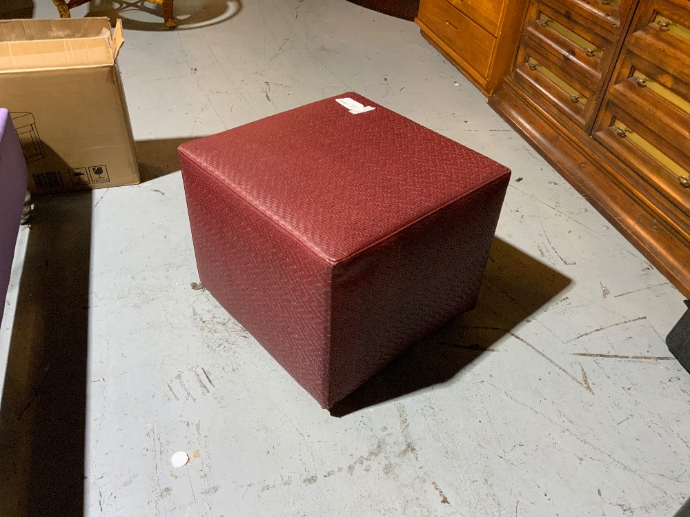 Maroon red ottoman woven leather 19” x 19” x 17” tall