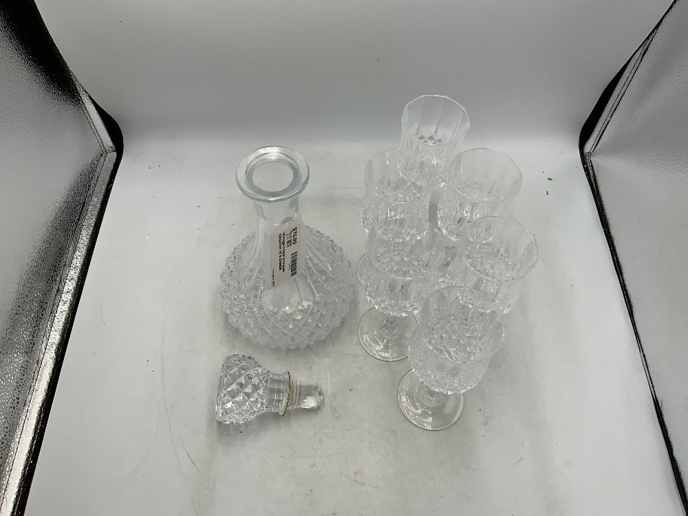 Vintage Cristal DβArques Decanter with 6 glasses Decanter 5.5β x 5.5β x 11β tall Glasses 2.5β x 2.5β x 6.5β tall
