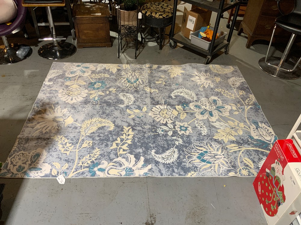 5ft x 7ft pale blue, grey, white, and yellow rug