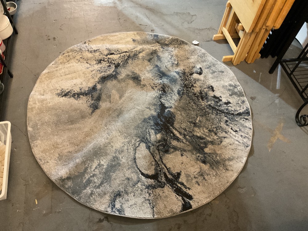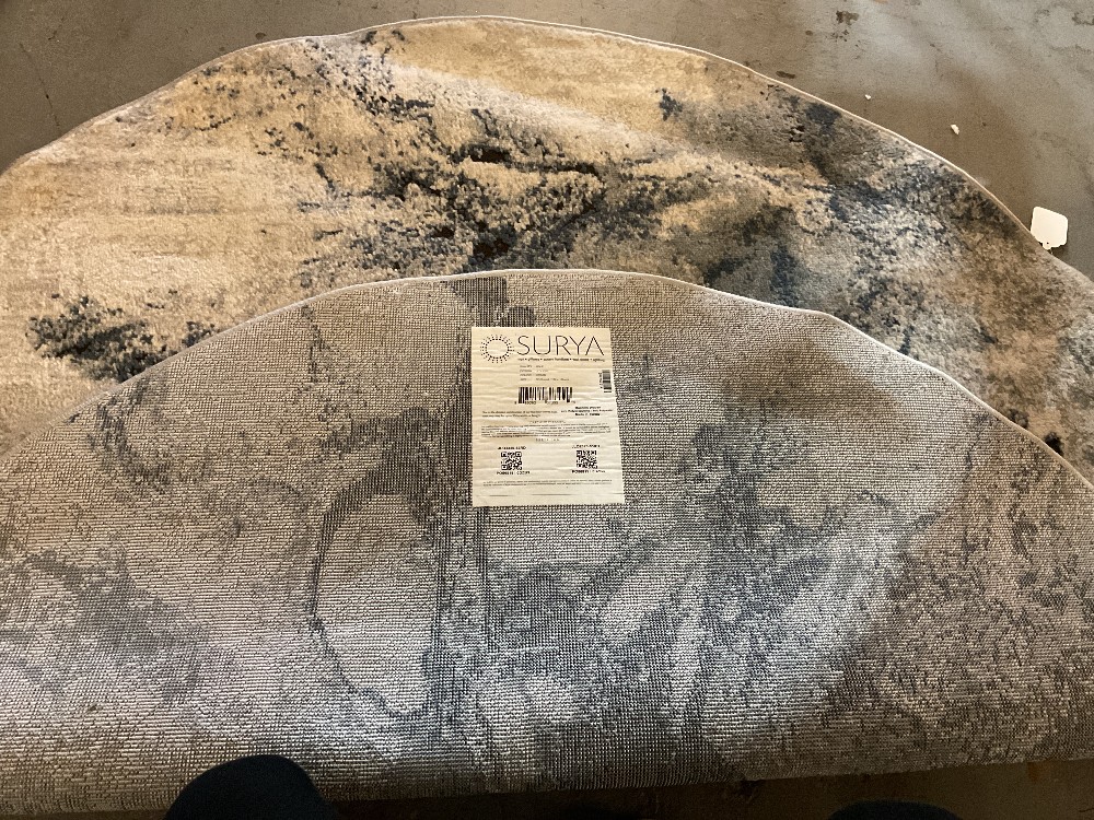 Surya cream, grey, and blue marbled color rug Quality: jolie Size: 5’3 round 160 x 160 cm 90% polypropylene 10% polyester