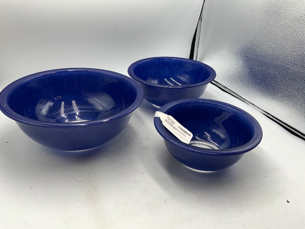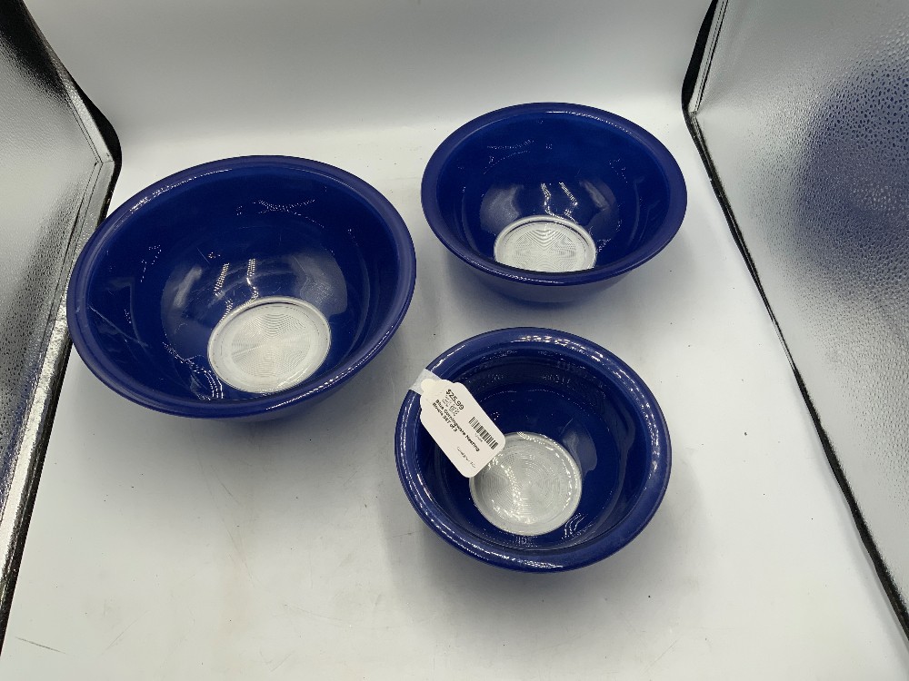 large bowl: 9 1/2 inches diameter x 4 inches tall Medium Bowl: 8 1/2 inches diameter x 3 1/2 inches tall Small bowl: 7 inches diameter x 3 inches tall