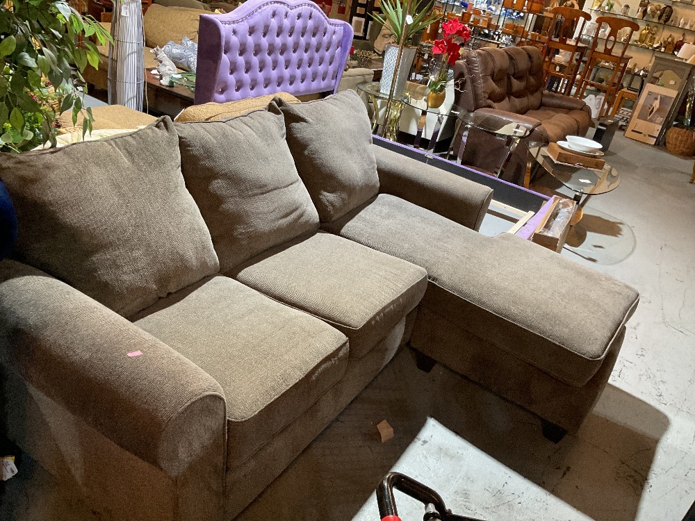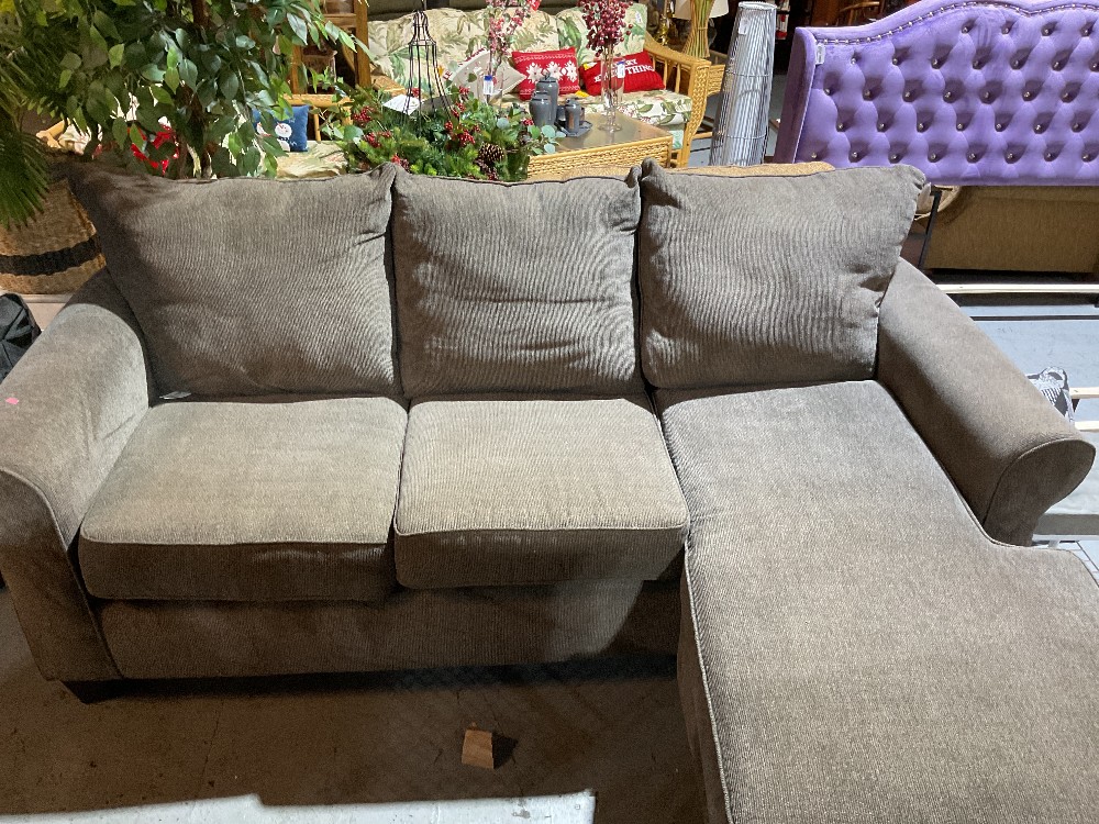 Grey sectional sofa 90” wide x 40-69” long x 40” tall